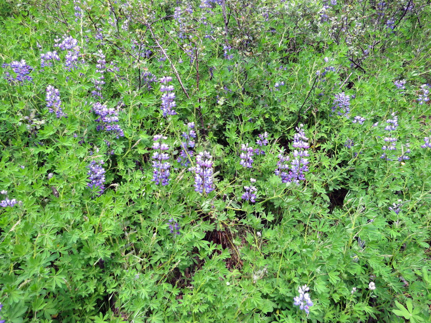 Melanie and I started at 8 AM on the 15 KM stage to Þórsmörk (Þórsmörk means Thor's Forest, and it really does have trees growing there. The beech trees grow tall enough that you cannot see over them. Vegetation of any sort seemed like a surprise after four days trekking through a volcanic landscape where seemingly the only flora is the brilliant green lichen).