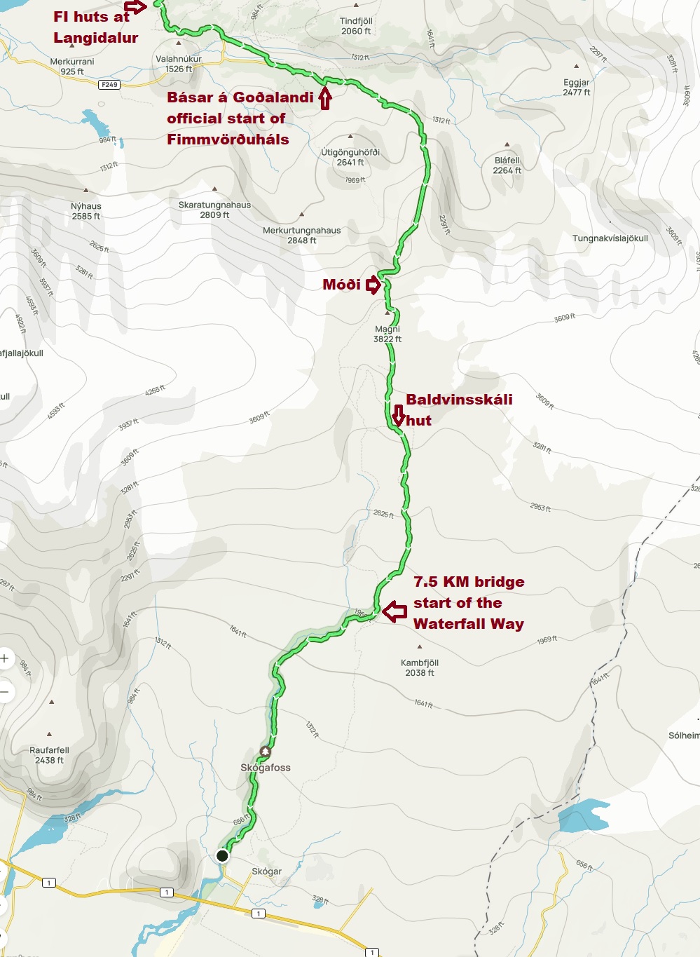 The weather forecast for this day was ideal, and that meant we would attempt to hike the entire length of the Fimmvörđuháls trail in one day. The traditional length for this hike is 25 Km, but that distance is from Básar to Skógar. Since we began at the Volcano huts, we had to hike an additional 5 Km just to reach the trailhead at Básar.