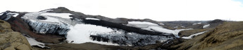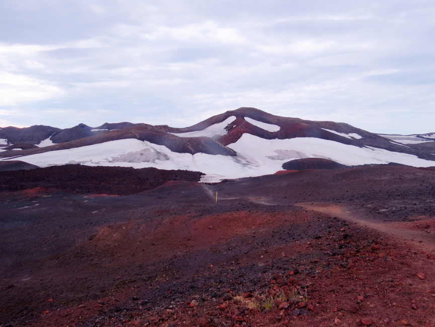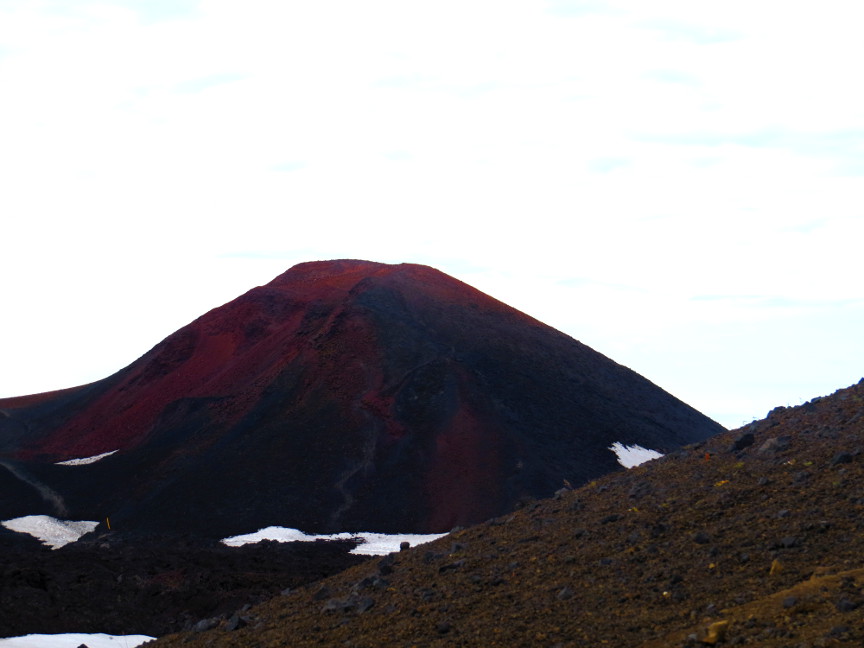 At the highest point of the Fimmvörđuháls are two recently-formed volcanic cones - the Móđi and Magni (named for the sons of Thor). The Móđi is a bright red color. These small cones can be climbed, but we still had a long way to go and so we did not take any of the enticing side jaunts.