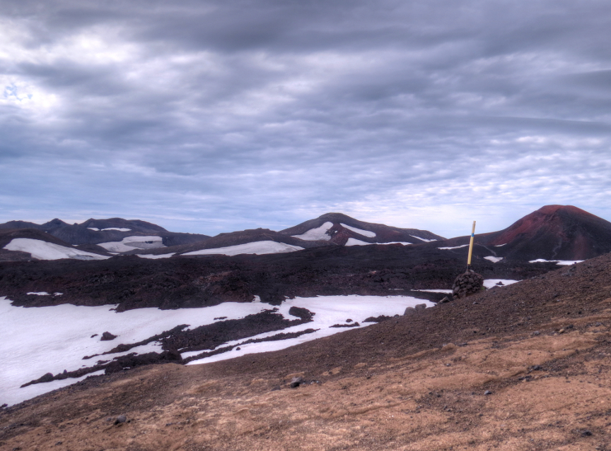 It takes a surprisingly long time to cross over the summit of this trail. There are couple of ice fields to navigate, and some lava fields to clamber over. All of the trail descriptions for the Fimmvörđuháls warn that the weather here can change suddenly, with fog and clouds and cold making it difficult to get through.