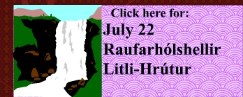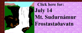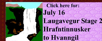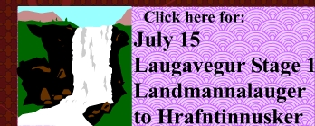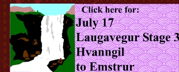 Day 6: Sunday July 16Hike 6.8 miles (11 Km) to Hvanngil Crossing the River Grashagakvisl Lunch at Volcano Huts Álftavatn Restaurant Stay at Hvanngil Mountain Hut Room: dorm. Food: yes. Showers: yesSide trip from Hvanngil hut: climb up to Hvanngilskausar, the Hvanngil ridge. |