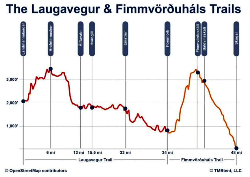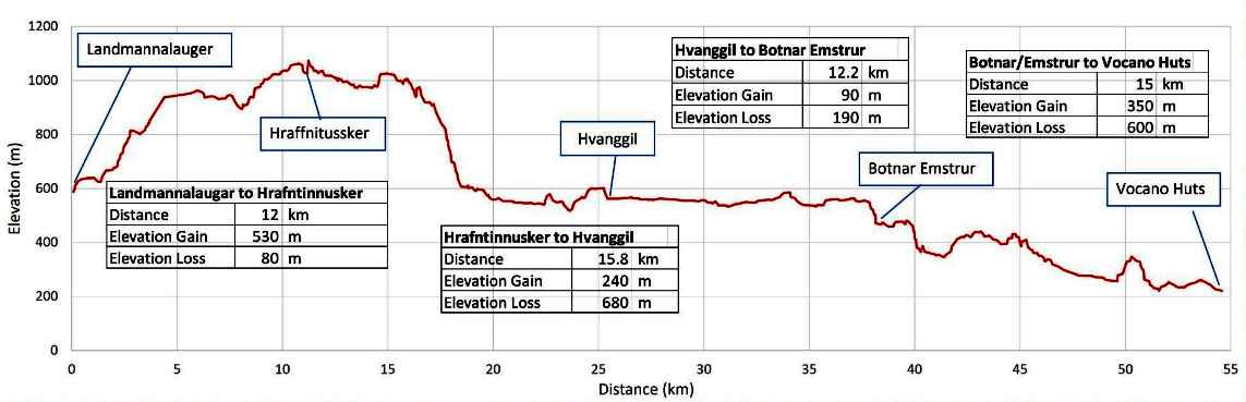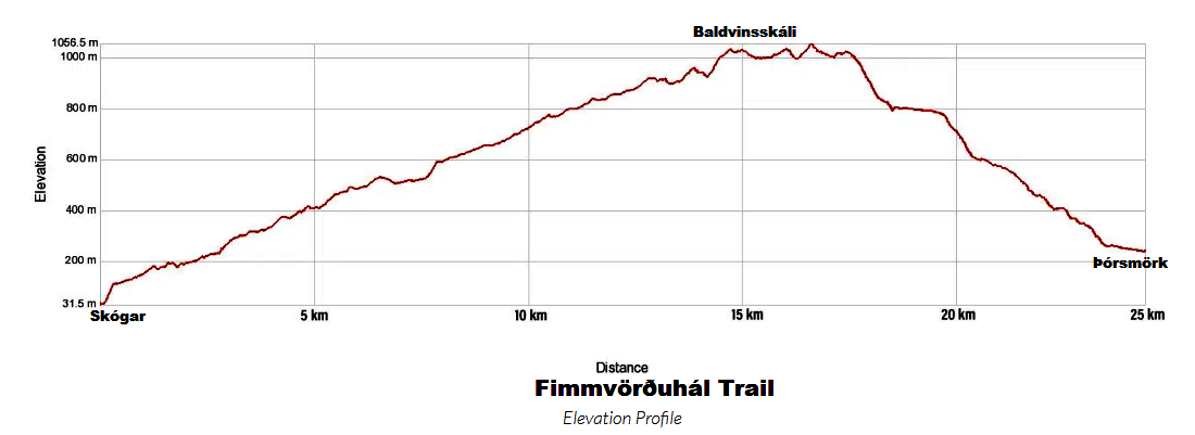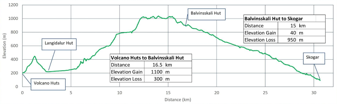 South to north elevation profile of just the Fimmvörðuhál trail (we traveled in the reverse direction).