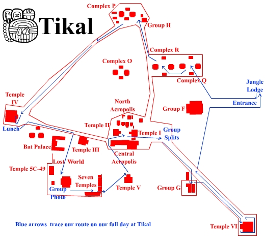 the Great Plaza. The next day, we had an all day affair where our guide Carlos showed us every major site in Tikal. This was a day of perfect weather!