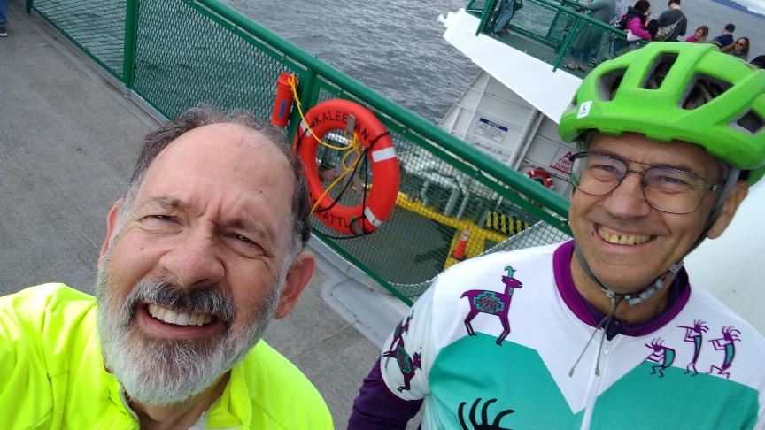 Beach Glass Cafe and ate a hearty breakfast there. After breakfast we pedaled across Bainbridge Island. The Seattle Ferry took us across to downtown, and soon I was on familiar turf, riding the same