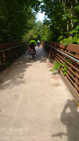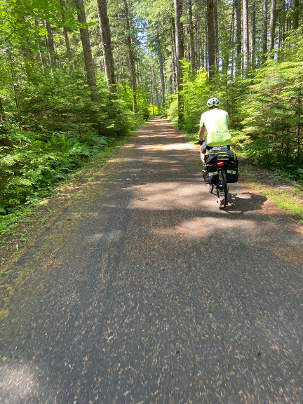 The rest of the ride into Port Angeles was on ODT dedicated bike trails. There was some steep but short up and down hills, which made me wonder if we were exactly following an old railroad route. Maybe there used to be bridges which no longer exist. We saw other cyclists on the trail, but most were not carrying any gear, so it seemed unlikely that they were doing the whole ODT.