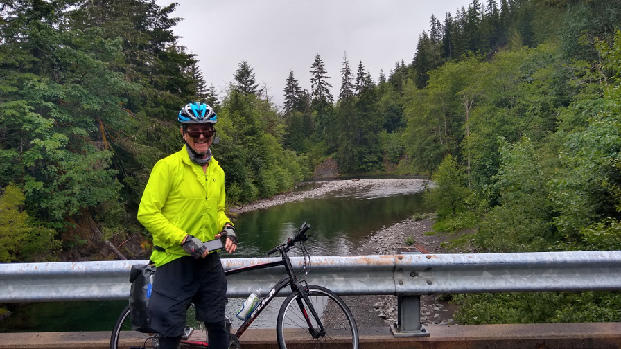 It was quite a surprise to see him in this remote corner of the US. Funny coincidence that we would happen to be at the same grocery store at the same time. We took advantage of the washer and dryer in the AirBnB to clean and dry all of our bike clothes. Tomorrow we start the ride back to Seattle. June 26 maps It was a short trip from the AirBnB down to the National Park and back. June 26 photographs June 26 video It was raining lightly when we left Forks at about 8:15. Our route was the reverse of the ride we did coming into Forks. The first 12 miles were along