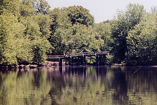 After our canoe trip, we drove to the Old North Bridge. There is a monument to the Minuteman at the end of the bridge, this statue was erected 100 years after the start of the Revolutionary War. The British mission to Concord was two fold: they were to capture rebel rousers Sam Adams and John Hancock, plus, they were supposed to seize and destroy a cache of arms that the rebels had stored at Concord. The ride of Paul Revere alerted Adams and Hancock, who eluded arrest. Most of the arms were also moved. The British searched through the buidlings of Concord under strict orders not to antagonize the civilian population. The weapons that were discovered were set afire in the town square. The Minuteman militia, gathered outside of Concord, saw the rising smoke and assumed that the British had set the town on fire. The militia advanced upon the British troops that were guarding the Old North Bridge, and fired upon them. Two British soldiers were killed, and the British retreated. The redcoats regathered in the center of town, and began to march back to Boston. Colonial militia men came pouring in from all directions, and fired upon the British column all along the route. The Revolutionary War had begun.