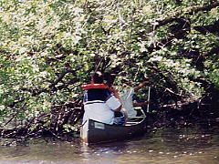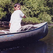 Although Ed and Sam paddled fast, their steering skills were not as impressive. Who put that tree in the middle of the river?