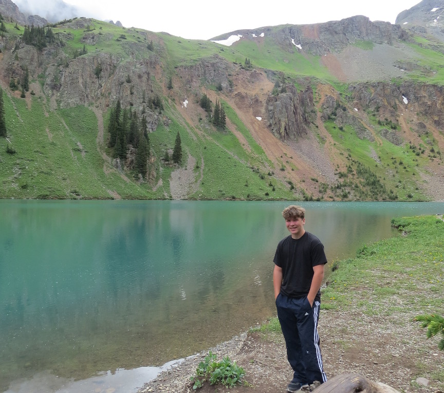 mile or so, which also perhaps the steepest part of the trail to Lower Blue Lake. The trail gains about 1200' in the first mile and a half. We spent about an hour at Lower Blue Lake, just admiring the scenery and nice weather. It was a terrific day. Ed and Suz hadn't showed up yet, but we decided to continue our hike on up to Upper Blue Lake. Rayden said the altitude was getting to him, so he decided to return to the trailhead while Melanie and I climbed up above Lower Blue Lake.