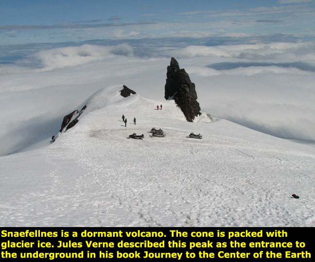 Snæfellsjökull. This was great fun. I had never driven a snowmobile before. A guide led us up a track to