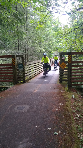 The rest of the ride into Port Angeles was on ODT dedicated bike trails. There was some steep but short up and down hills, which made me wonder if we were exactly following an old railroad route. Maybe there used to be bridges which no longer exist. We saw other cyclists on the trail, but most were not carrying any gear, so it seemed unlikely that they were doing the whole ODT.
