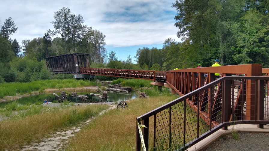 We are skipping the unsafe portion of the ODT which goes along Highway 20 on the eastern end. Instead, we come up from Hood Canal and join the ODT where it turns into a bicycle trail.