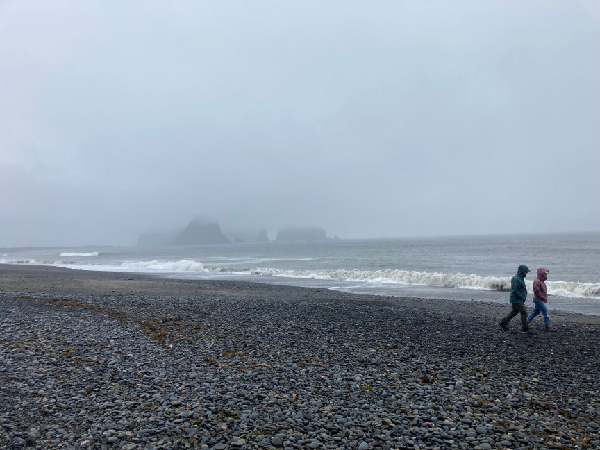 afternoon. Breakfast was French toast, scones and bacon. We packed up some sandwiches for lunch and headed out at about 11 for the ride down to Rialto Beach. We didn't