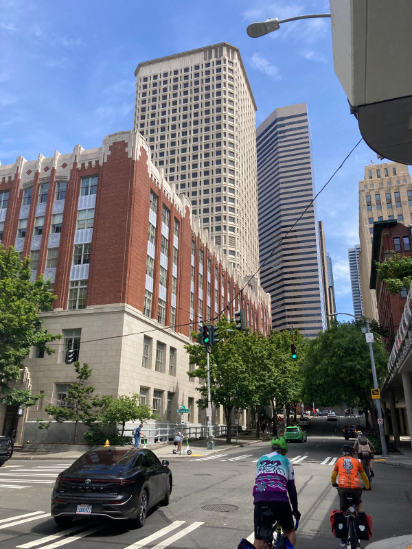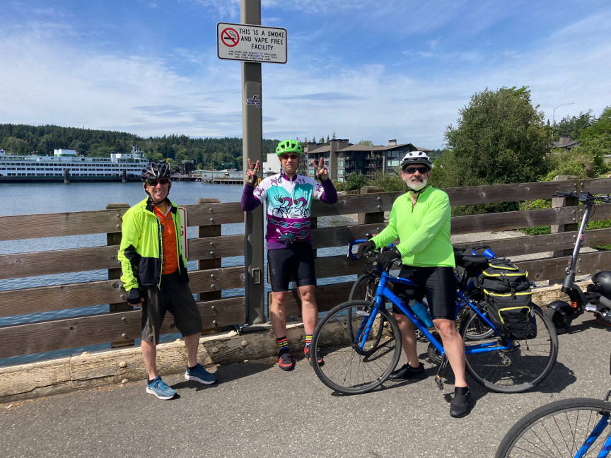 Beach Glass Cafe and ate a hearty breakfast there. After breakfast we pedaled across Bainbridge Island. The Seattle Ferry took us across to downtown, and soon I was on familiar turf, riding the same