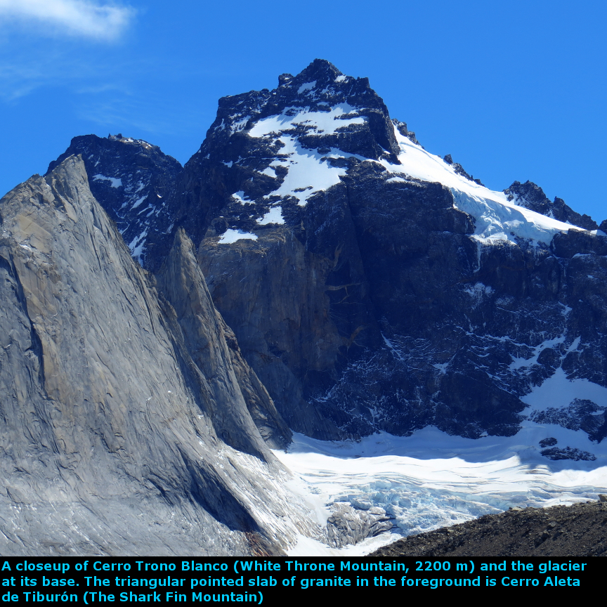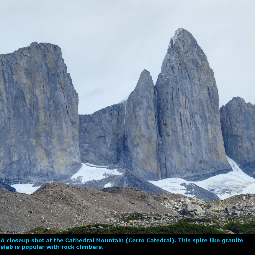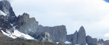 This was an epic day of trekking. We hiked 26.5 km, with some significant elevation gain. I was quite tired when we reached Refugio Paine Grande, but I was also exhilirated by what we had accomplished. We hiked the middle section of the "W" route and enjoyed marvelous scenery the entire day. We were assigned to the 8:30 A.M. seating for breakfast, which was the second serving. But 8:30 rolled around and the Refugio was still finishing up with the first wave of breakfasters. I knew we had a long day ahead of us, and I wanted to get started quickly, so we decided to skip the breakfast and go. We picked up our boxed lunches, and ate the fruit and granola bars from there, and were on our way. The first part of the hike is a 5 km jaunt from Refugio Cuernos up to Campamento Italiano. We walked along the shore of Lago Nordenskjöld, and then did a little bit of climbing. Yesterday, as we walked to Refugio Cuernos, we could see heavy clouds enveloping the entrance to Valle Frances. But today the sky was clear in every direction and we got our first views up Valle Frances. We reached Campamento Italiano at 10:45, where we dropped off Melanie's pack, putting everything valuable into my pack. We left her pack at the ranger station, along with dozens and dozens of other packs - no one lugs all their heavy gear up Valle Frances. Beyond Campamento Italiano, the trail begins to climb. I thought this was the toughest part of the entire day, and I was a little bit concerned that the trail would be this steep all the way up to the Mirador. On our left towered the Cerro Paine Grande, with the Glaciar del Frances. On our right loomed the Cuernos del Paine. We had great views in all directions. We kept climbing higher, but not as steeply. At times we walked through forests, and then we would reach an open area with more marvelous vistas. By 2:00 PM we stood at the Mirador Britanico. Granite peaks surrounded us. We had clear blue sky and an unobstructed view of the glaciers and mountains. It was a tremendous feeling to be able to enjoy such a great view, I felt lucky that our trip had enjoyed such great weather; everything I had read about Patagonia implied unrelenting wind and bursts of rain, but this was ideal. I think our time on Mirador Britanico was my favorite part of our trek through Torres del Paine, though the rest of our trip was pretty fantastic also. At 4:00 PM we were back down at Campamento Italiano. Refugio Paine Grande was 7.5 km away, but it was all down hill or flat terrain. As we walked along, we passed through a large burned area caused by a careless tourist. Occasionally, I would stop and turn around for a look back at the majestic Cuernos del Paine. Some books recommend hiking the "W" from west to east so that when you hike the stretch between Campamento Italiano and Refugio Paine Grande, you will enjoy the view of these peaks in the front of you. At Lago Skottsberg, we stopped at a viewpoint for the classic pictures of the Cuernos rising up behind the beautiful blue lake. From there, it was just another 2 km to the Refugio, but they turned out to be a challenging last 2 km. It was this stretch that we encountered the strongest winds we felt while in Patagonia. It was late afternoon, and the strength of the wind was so strong it knocked Melanie off of her feet twice! Fortunately we were hiking on level ground, so there was no danger of being blown over a cliff. I heard stories from other hikers about much stronger winds at Paso John Gardner, but for this short stretch we got our own little taste of what Patagonia winds could do. We reached Refugio Paine Grande at 6:00 PM. What a great day. Once we stopped hiking, my legs really stiffened up, and found I could barely walk to dinner. That evening we watched out our window as other hikers struggled to set up their tents in the gusting winds, and I was glad that we were inside! Panorama Photos