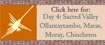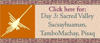 Saturday June 18thNazca Flights Catch 3:45 A.M. bus from Lima for full day tour of Nazca lines, Paracas National Reserve, Ballestas Islands Return to Lima late in evening Stay in Lima at Hotel Runcu Miraflores |