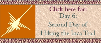 Friday June 10thAlpaca Expedition Classic Inca Trail 4 Day Trip Inca Trail Day 2: Ayapata - Dead Woman's Pass - Runcuraccay Pass - Chaquiccocha Walking distance: 9.94 miles/16 km (7-8 hours) Campsite altitude: 3600 meters (high) above sea level (chilly weather) Considered: Top day (you will have survived the two highest passes) Area: Andes and Cloud Forest Weather: Cold and rainy Camping on trail |
