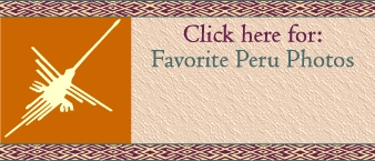 This webpage is the story of our two week trip to Peru. We planned our own itinerary, and then signed up with local guides for our activities. It worked out well for us, we had a great trip. I have documented in great detail all that we did and saw. If you want just an overview of Peru, then follow the link below to the Favorite Photographs webpage. If you are considering your own visit to Peru, I tried to give some helpful information on the Trip Notes page. Feel free to contact me if