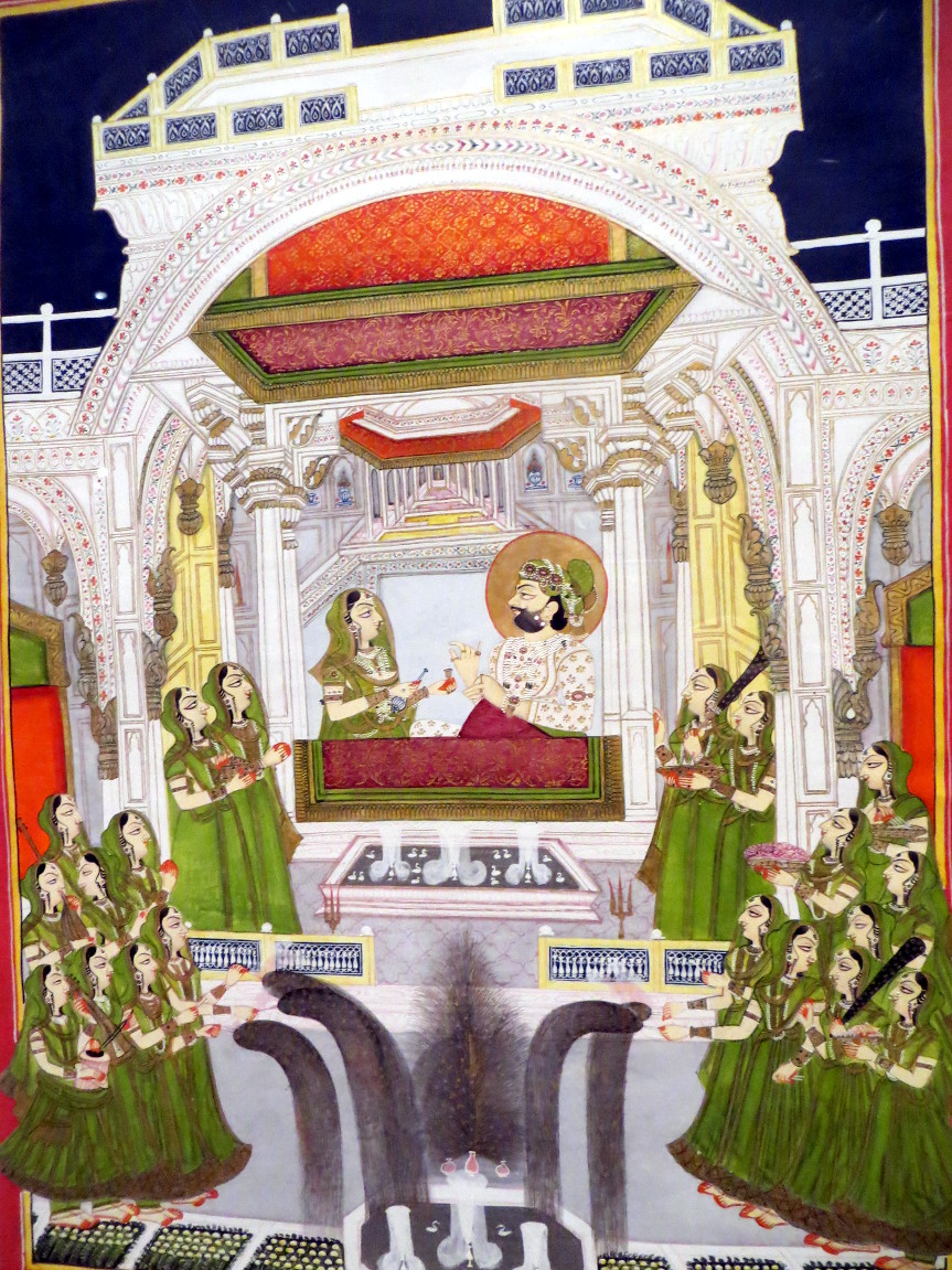 and for some reason admission was free that day, so we went in and I got my first exposure to the style of the old royal Indian art. I really liked the colors and details and the stylized artwork. I don't have any pictures