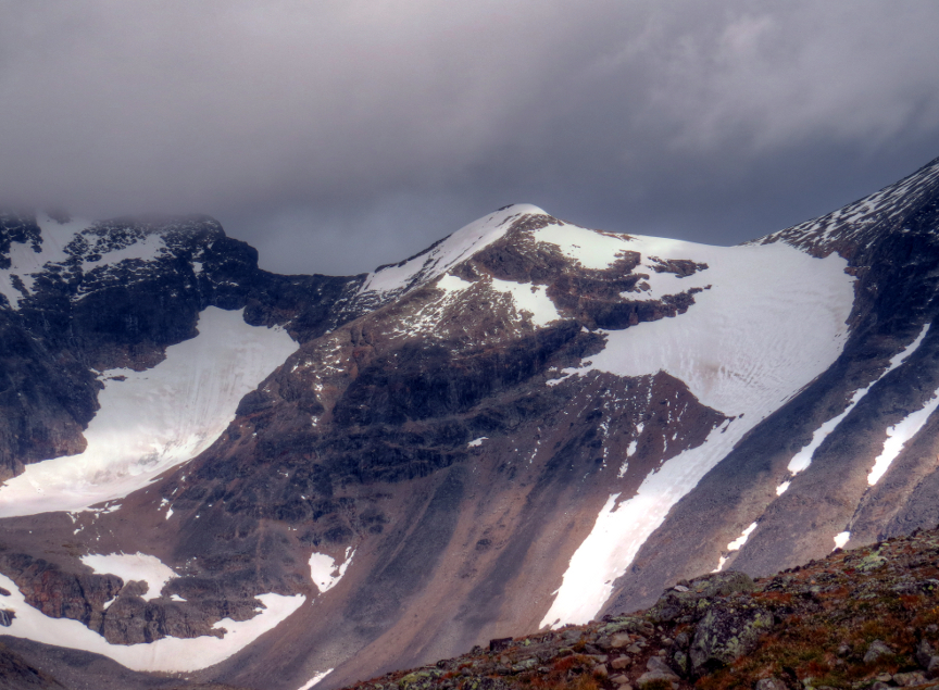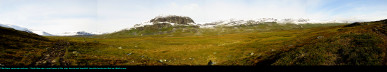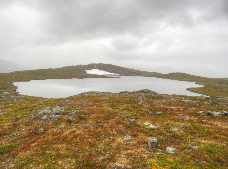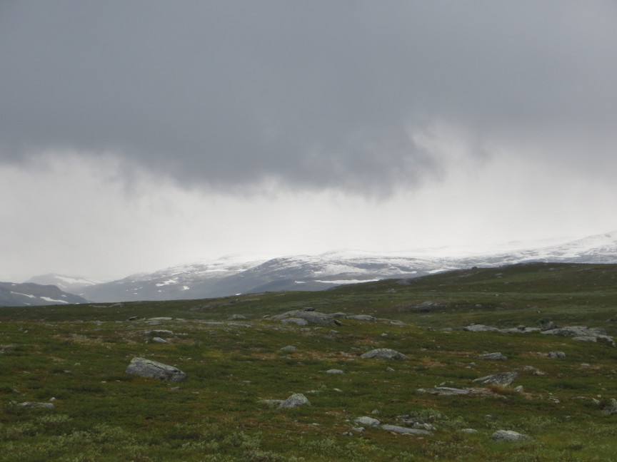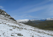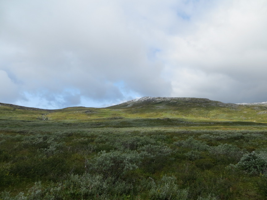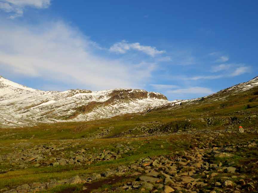 Just to the west of Tjäktja is a low mountain, called Muorahiscohkka. The Tjäktja hut warden told me that a day earlier many of the hikers had climbed to the top of Tjäktja for fantastic views, including being able to see into Norway.