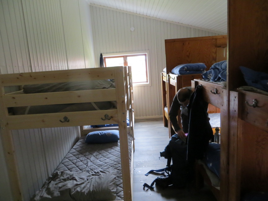 At Abiskojaure, we bought some food at their store, and cooked it using the gas stoves in the kitchen. The bunks at Abiskojaure are in two large rooms, with about 20 bunks per room. We went to