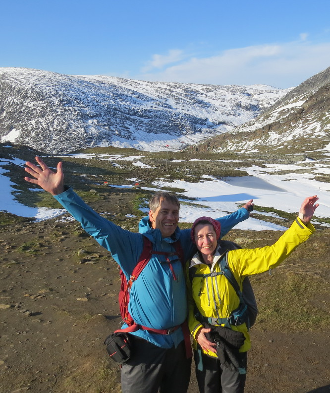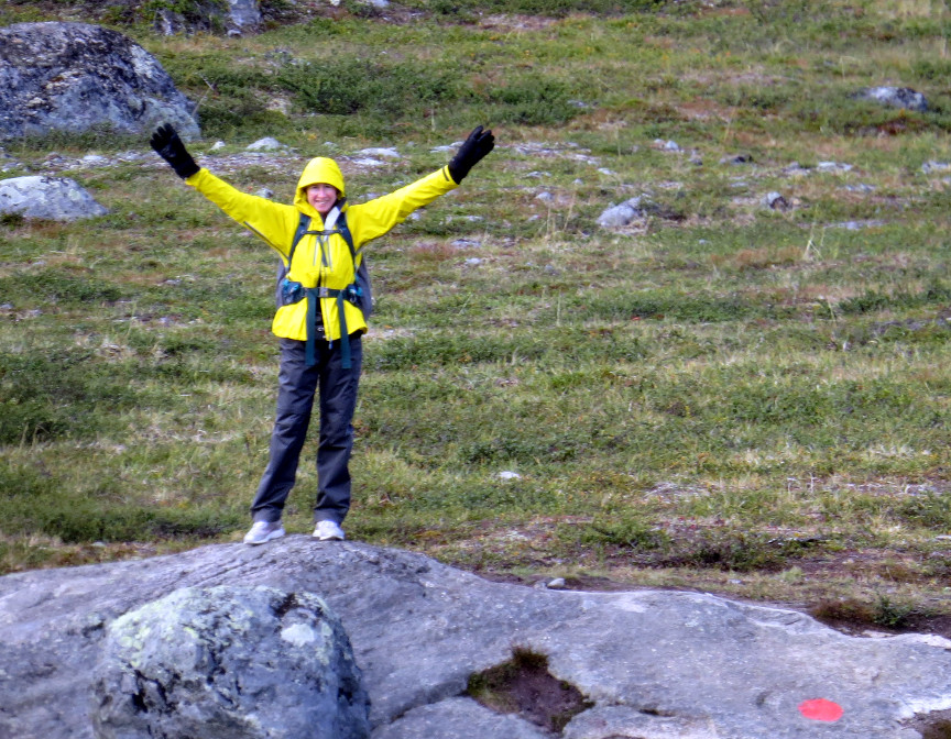 gear was good quality. Unfortunately, Melanie had packed her hiking boots and wore tennis shoes on the plane. She didn't want to try wearing new boots on the Kungsleden, so she did the entire hike in her sneakers. That's probably a