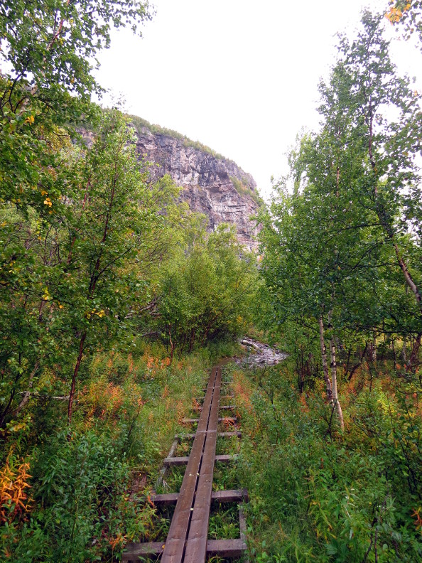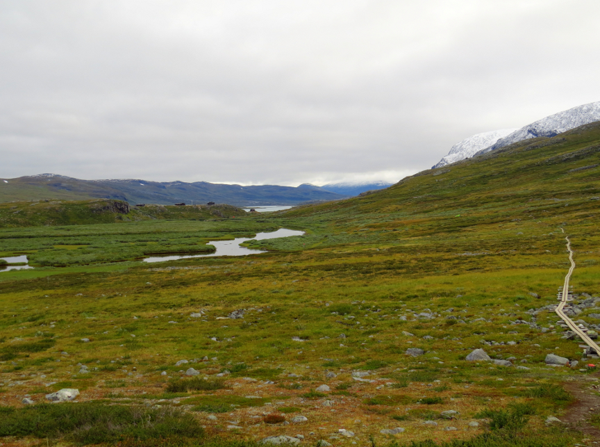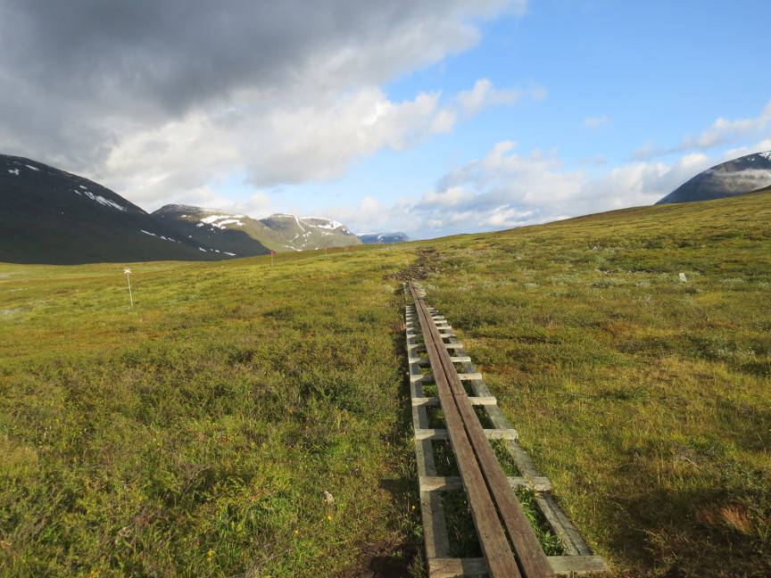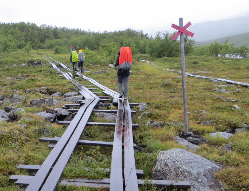 The tundra is a wet place in the summer, with streams, shallow pools, marsh land and mud. The trip would be an unpleasant slog, except the Swedes have placed kilometers of boardwalk over the
