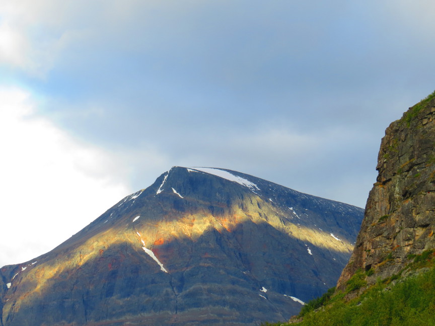 Darfaljavri Lake, a hike of about 9 KM in each direction. We started hiking before 8 AM, so again we saw interesting morning sunlight on the surrounding mountains. There were some clouds on this day, but we didn't experience any rain.