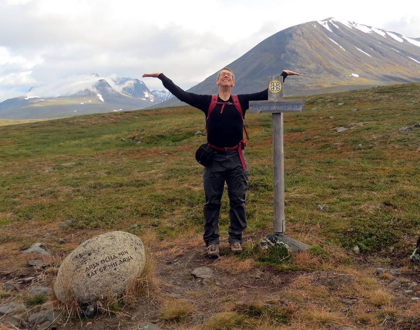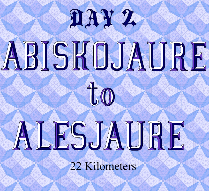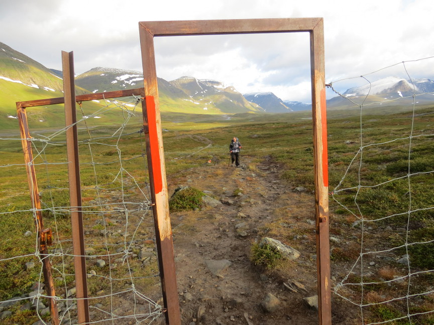 the Nallo hut, but it was 10 KM one way to reach from Salka. We only hiked about 5 KM from Salka, far enough so that we could see the Reaiddjavir Lake, and then turned around and hiked back. We cooked dinner and cleaned up at the sauna. It was a great day for us. Kungsleden Day 5 We got a very early start this morning, we were hiking before 7 AM. Today was our longest day, 23 KM, so we wanted a good start. The weather was perfect that early in the morning,