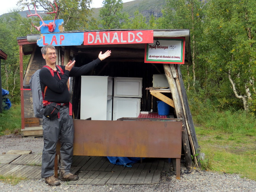 At the end of the lake is a Kungsleden institution called Lapp Donalds, which sells reindeer burgers. Anthony had been looking forward to a burger for lunch, but when we arrived, the
