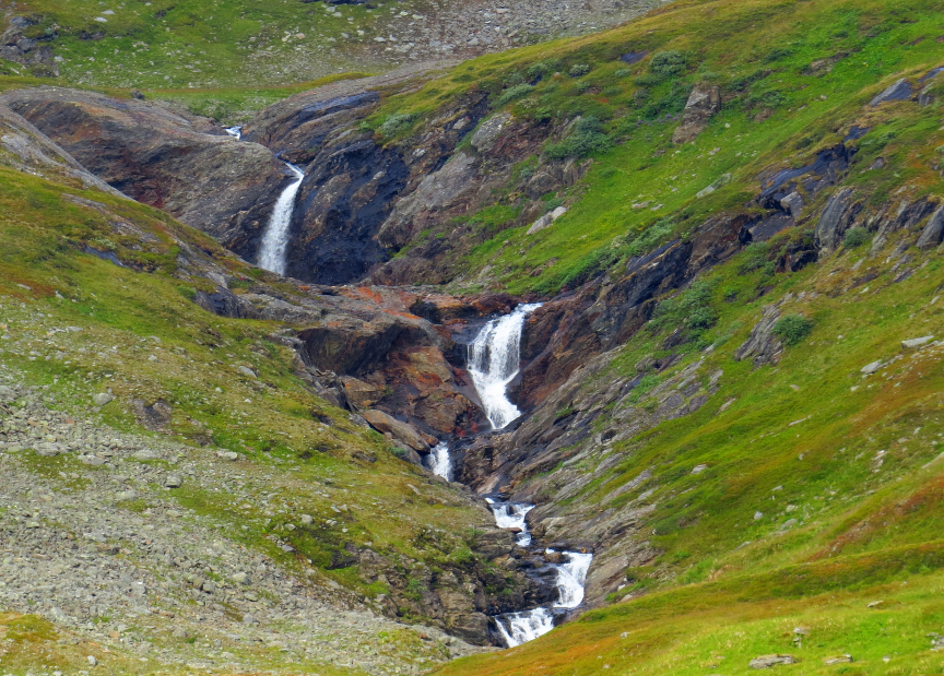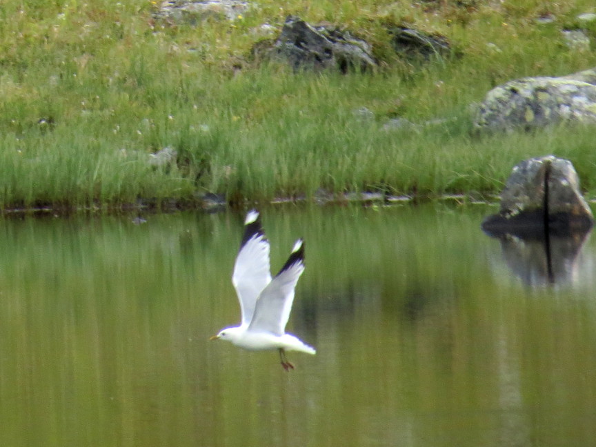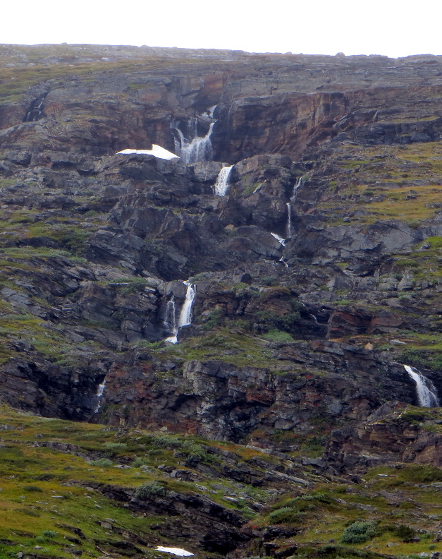 Anneka said she saw a ptarmagin when exploring near the base of the waterfall, so I went out to look after dinner. I didn't spot the ptarmagin, but on the distant mountainside I saw a large herd of reindeer. There were still hikers walking on the