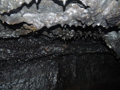 and proceeded to walk down the lava tube and explore the chambers, sometimes having to climb over piles of rocks that had fallen from the ceiling. This lava tube is 35 miles long, extending to the Pacific Ocean. Of course, we walked only a small portion to see different things.