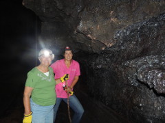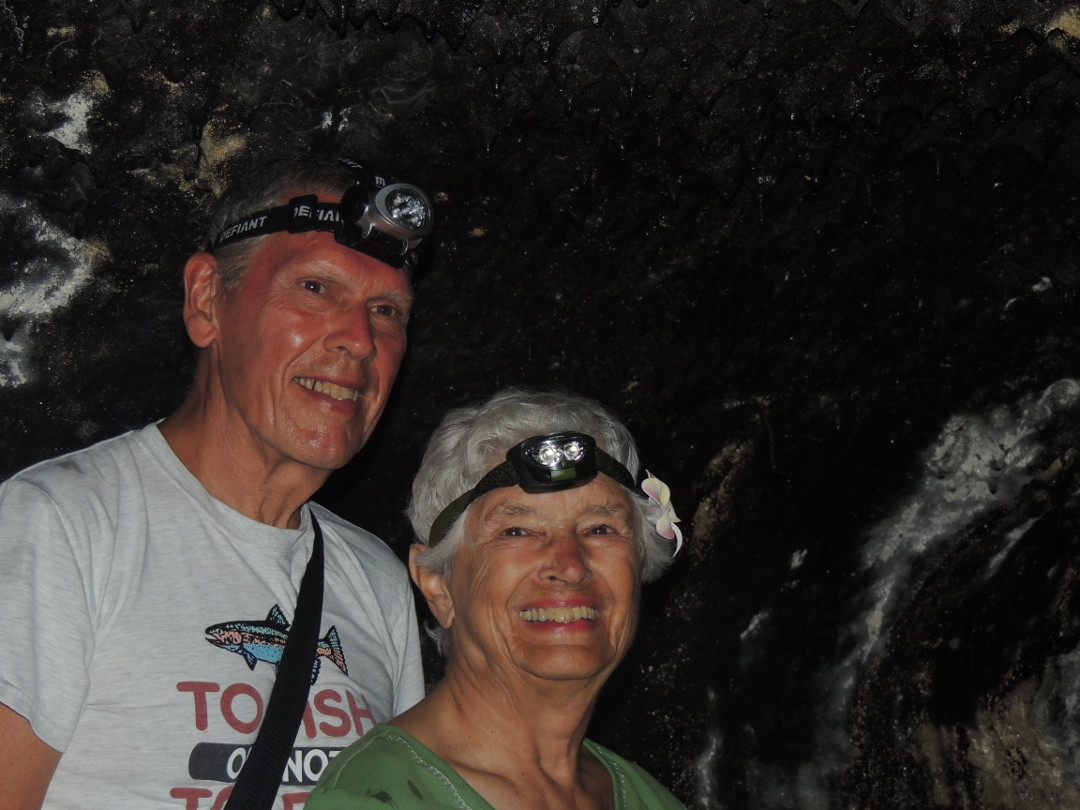 The sister of our Bed and Breakfast owner met us and described an underground Lava Tube, through which she would be willing to escort us .She was very cautious about safety. She told us about guiding a 73year old man and before deciding to take us on this adventure, she asked me to touch my toes. I did, then she said “You’re in!” She made it clear that it was not like other tubes at National Parks with lights and smooth floors. The ceiling was very tall in some places but in other places we would have to bend over. We would be given a flashlight to carry, and a headband with a light in it. At the end of our tour, I told her that am 81 years old. Now she can up her oldest customer story.