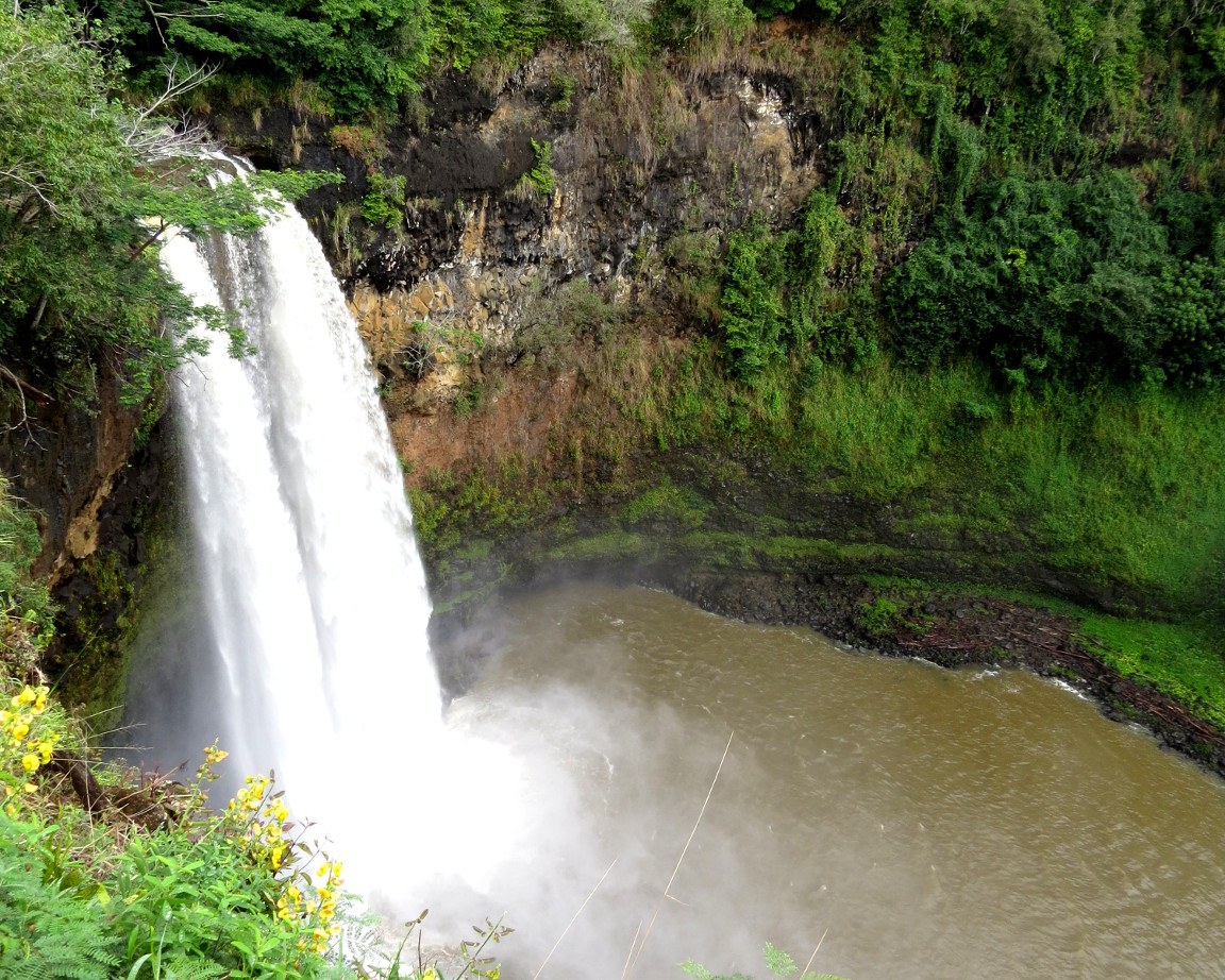 Wailua Falls is actually a double falls most of the time, except in the rainy season, when it merges into one huge falls. It is 80 feet high at normal times. I thought it was especially beautiful, and a wonderful way to begin our visit.