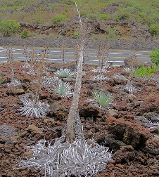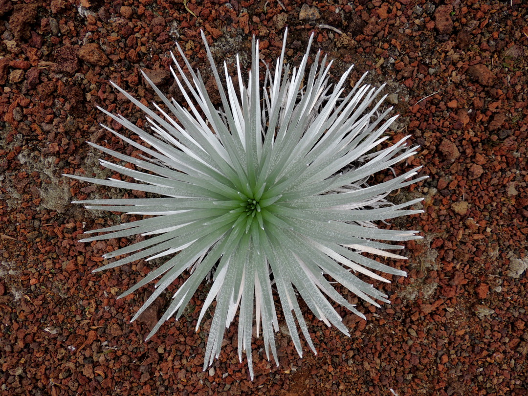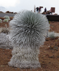 The Silversword, one of the most beautiful flowers in the world, is found only on the mountain called Haleakala. It is unique in that it flowers only once, and then dies. There were several Silversword plants around the peak of the mountain.