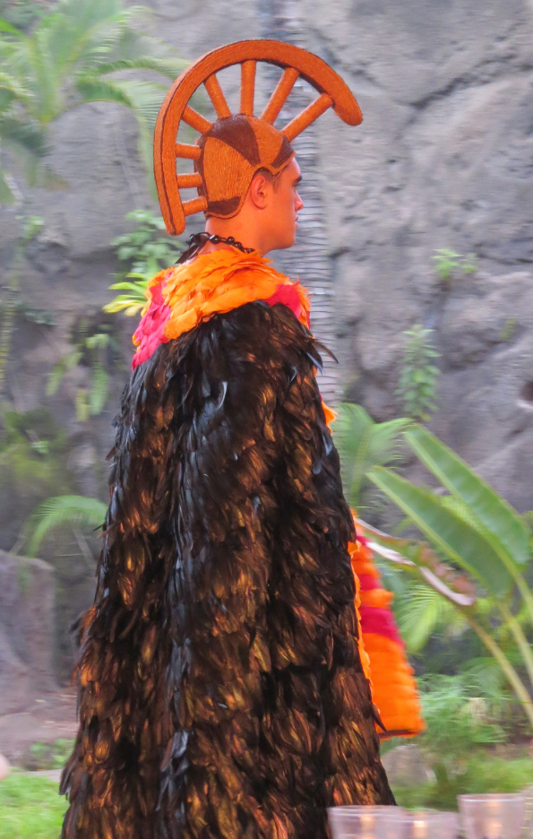 One man took the part of a tribal leader with many displays of honor. In addition to a unique crown, he also wore a cloak of colorful feathers.