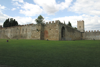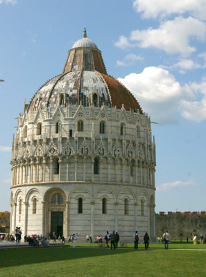 ![]() Pisa City Walls Next we explored Pisa's Baptistry. ![]() ![]() The baptistry Inside the baptistry we admired the Holy Water Font, and the beautiful pulpit by Nicola Pisano; Pisano created both the pulpit in the baptistry and the duomo. ![]() ![]() Art, Melanie, and Roseann climbed the stairs to the second floor of the baptistry, and found this view looking down on the Baptistry Main Floor. ![]() The Baptistry is noted for its acoutistics. We were fortunate to be present for a demonstration. One of the guards, sang a long single note of just one tone. It echoed beautifully. Again he sang it, and as it echoed he sang another just a bit higher; so that he actually ended up singing a duet with himself! Alas, soon it was time to leave to catch our train back to Florence. On our way out, we had to run the gauntlet of tourist traps selling souvenirs, and who-knows-what. I turned around outside the gate and looked back at our day’s adventure. The Baptistry, The Duomo, and the Leaning Tower had been such an adventure in Pisa! ![]() Looking through Porta San Maria in Pisa's city walls |