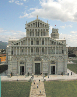 ![]() The Leaning Tower of Pisa Construction began in 1173 and required 200 years to complete. Even before it had been completed, it began to lean. Over the centuries, it continued to lean more and more at an increasingly steeper angle. In the 19th century, attempts to correct the lean caused it to slant even further. In 1988, the tower was closed to visitors, and work began to straighten it before it toppled over entirely. Lead ingots were placed at its base with a system of steel cables holding it in place. Holes were drilled into the ground to remove the silt from under the foundations. At least for now, the tower leans at an angle of 5.5 degrees. Visitors are now allowed to climb to the top of the tower, and a great many do, paying a substantial fee to do so. Art and Melanie were eager to do this, and since we had taken the early train from Florence, they were able to so without waiting. It seemed a great height as we watched them waving to us. It seems that everyone who goes to Pisa, wants to take a silly picture of holding up the Leaning Tower, or trying to push it over. We tried both! ![]() ![]() The Leaning Tower stands in the Field of Miracles, easily one of the most beautiful squares in all of Italy. Although the Leaning Tower is the best known building, there are others well worth a visit. The Duomo, Pisa’s beautiful cathedral, rivals many famous churches in Italy, but continues to be overshadowed by its tippy neighbor. Its 12th century façade contains colored sandstone, glass and majolica plates. ![]() ![]() Western side and Eastern side of Pisa's Duomo The decorations in the façade also include knots, flowers, and animals depicted with inlaid marble.